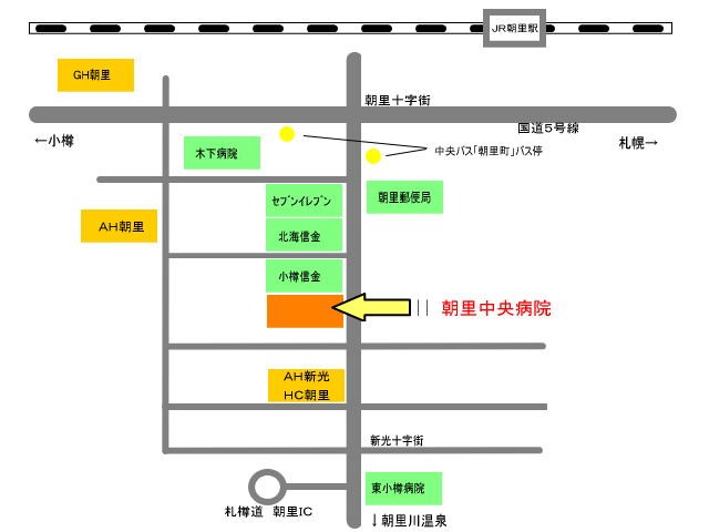 - ”朝里病院、朝里整形外科内科病院、朝里整形外科おたるクリニック”の3施設を合併し、平成22年10月1日に、小樽市新光に、医療法人北光会 朝里中央病院として開院しました。